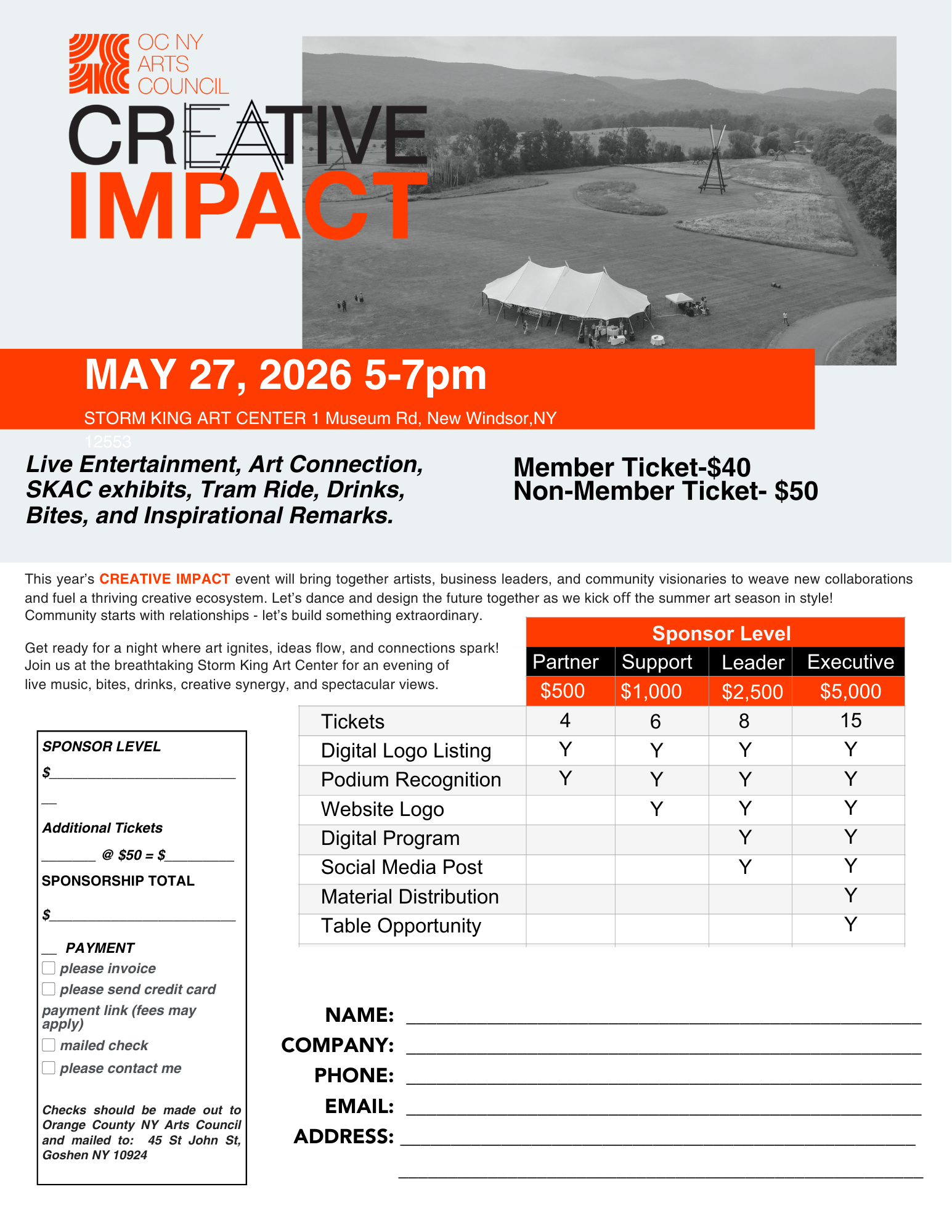 This annual evening event creates a vibrant space to explore the vital role the arts play in driving economic growth and business success. Set against the stunning backdrop of Storm King Art Center, the gathering brings together artists, business leaders, and community visionaries for an inspiring night of connection and collaboration.